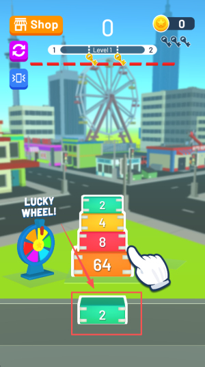 2、放置合并砖块:将砖块放置在合适位置,优先合并同数字砖块以实现数字加倍,逐步提升砖块塔数,朝着关卡目标推进。