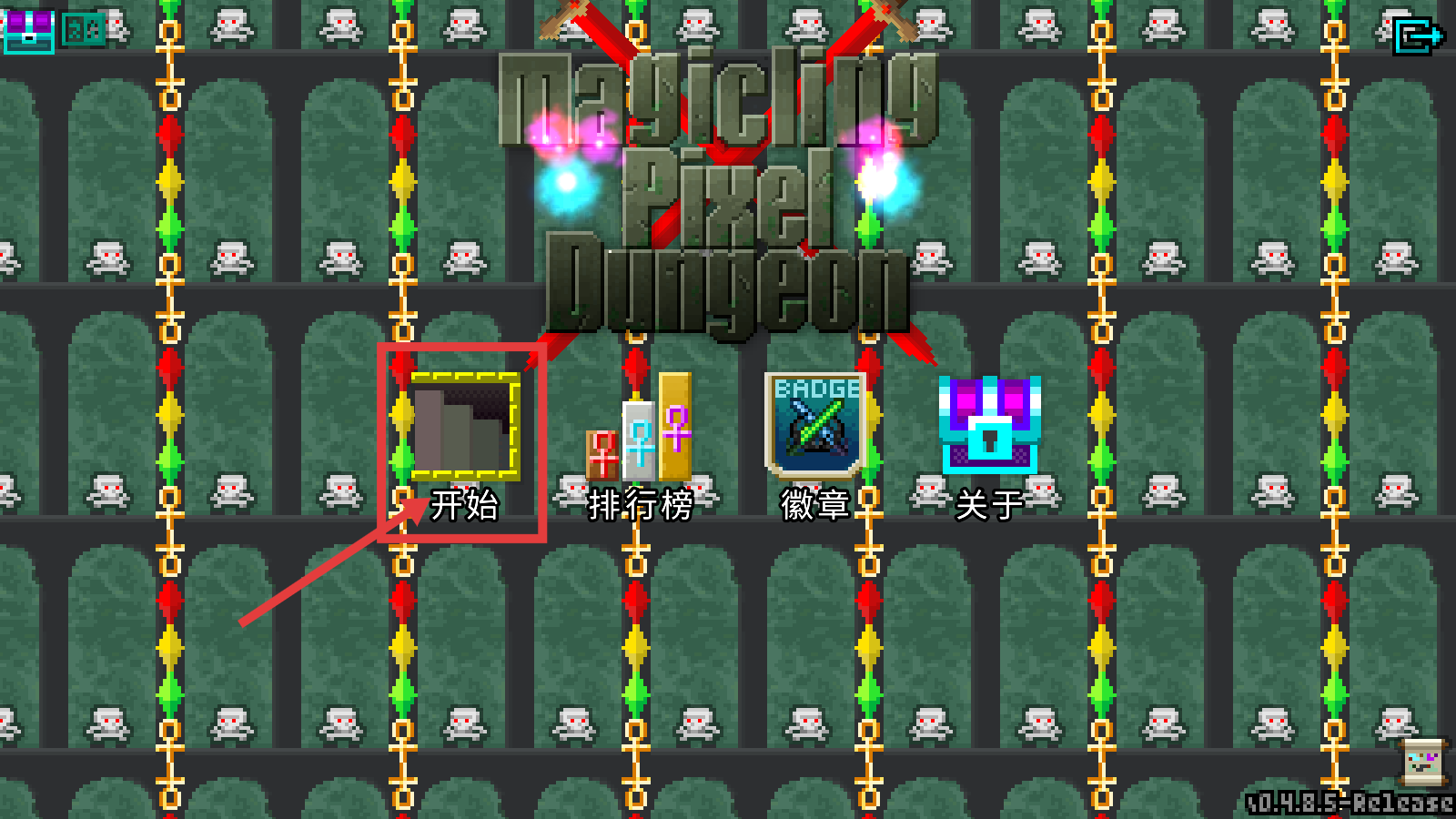 1、点击【开始】,进入【Magicling-Pixel-Dungeon】游戏,开启地牢冒险,探索关卡。