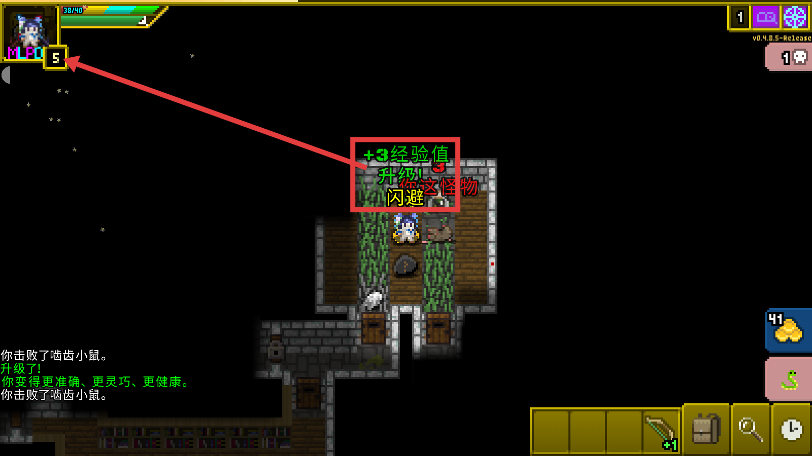 4、击败怪物获取【+3经验值】,升级后属性提升,变得更准确、灵巧、健康,助力地牢闯关。