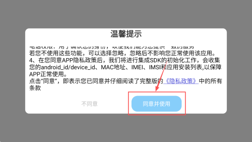 1、如何同意隐私政策:在应用启动时,阅读弹出的隐私政策提示框,点击“同意并使用”按钮以继续。