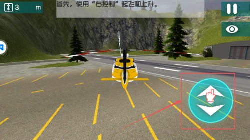 4、如何操作直升机:在游戏操作界面,根据提示使用屏幕右侧的虚拟控制杆进行直升机的起飞和上升操作。