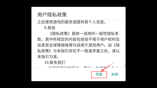1、如何接受隐私政策:在游戏启动时,阅读弹出的用户隐私政策,点击“同意”按钮以继续。