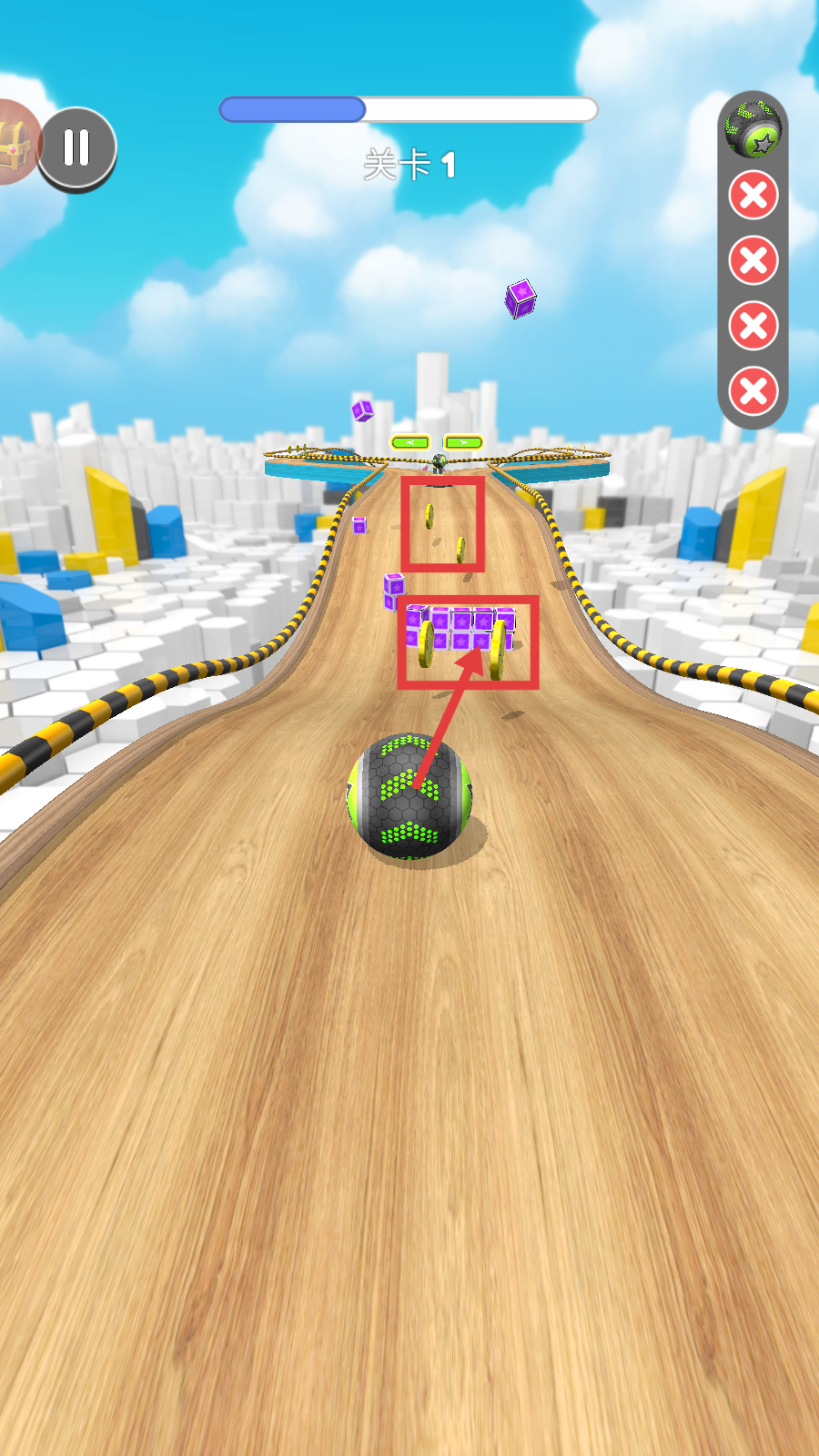 2、行驶中注意避开红色叉号障碍,精准控制球的移动方向,避免失误。