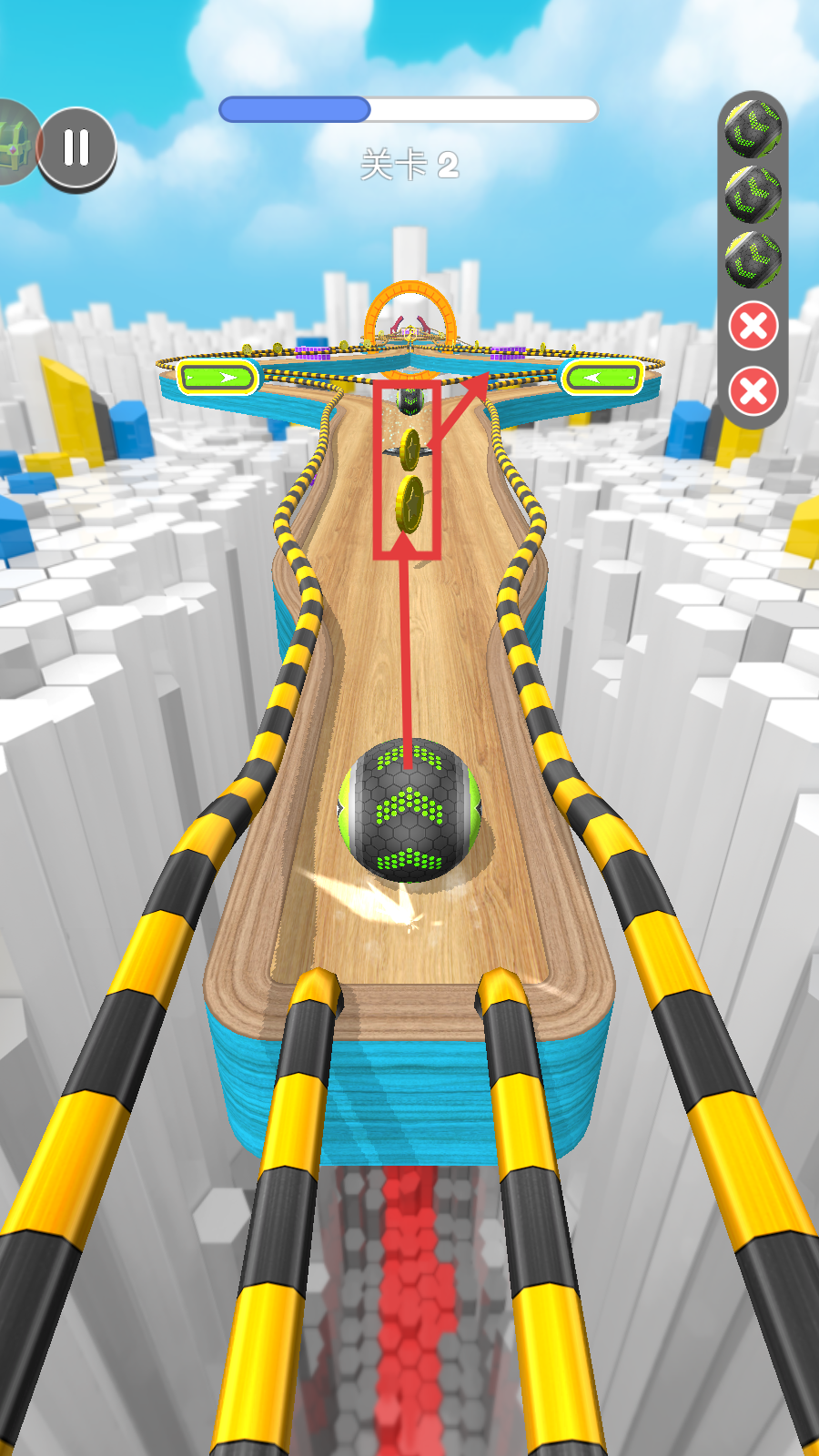 2、行驶中沿路径收集金币,注意保持球的平衡,避免掉落,积累资源助力通关。