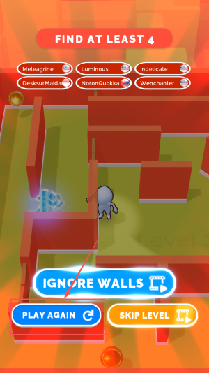 4、最后,若成功找齐,可继续下一关;若失败,点击“PLAYAGAIN”重玩或“SKIPLEVEL”跳过本关。