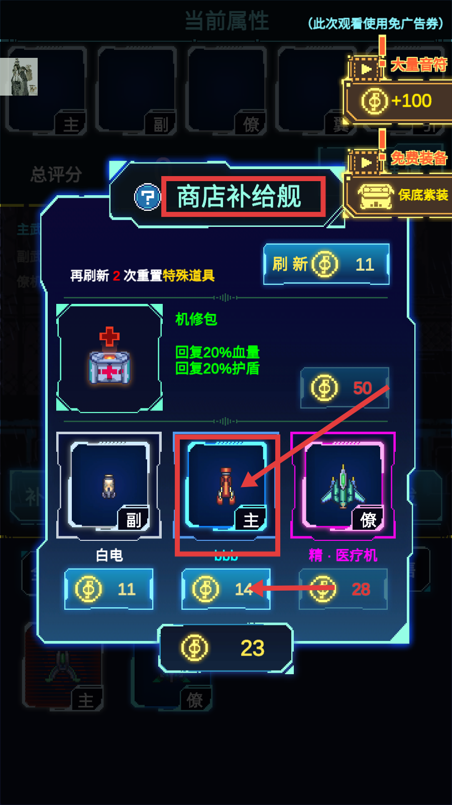 1、在【商店补给舰】中,可花费资源购买【主武器】【机修包】等,提升战机战力,助力通关。