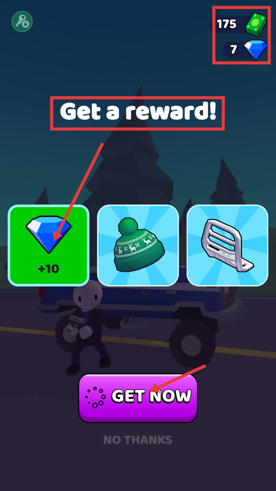 4、完成关卡后,点击【GET-NOW】获取【钻石+10】等奖励,积累资源助力后续关卡。
