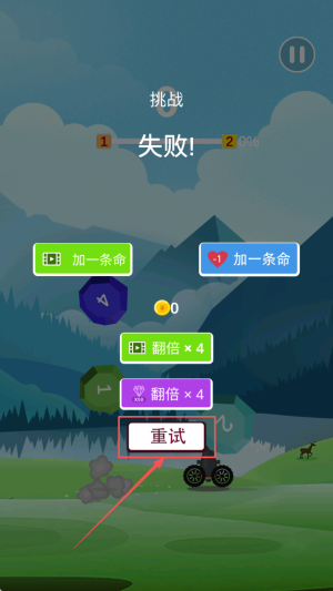 4、如何重试关卡:在游戏失败后,点击“重试”按钮,重新开始当前关卡。