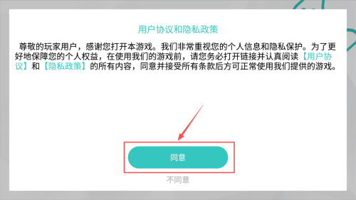 1、如何同意协议:在游戏启动界面,点击“同意”按钮,接受用户协议和隐私政策。