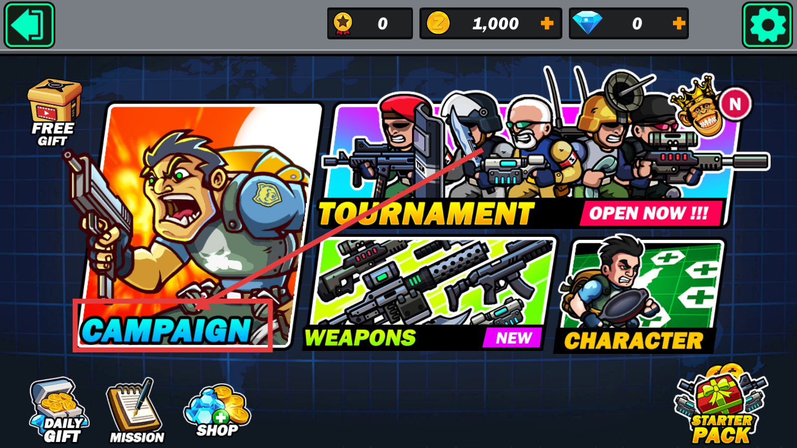 1、进入游戏后点击【CAMPAIGN】模式,开启战役关卡,体验主线剧情,积累资源以提升战力。