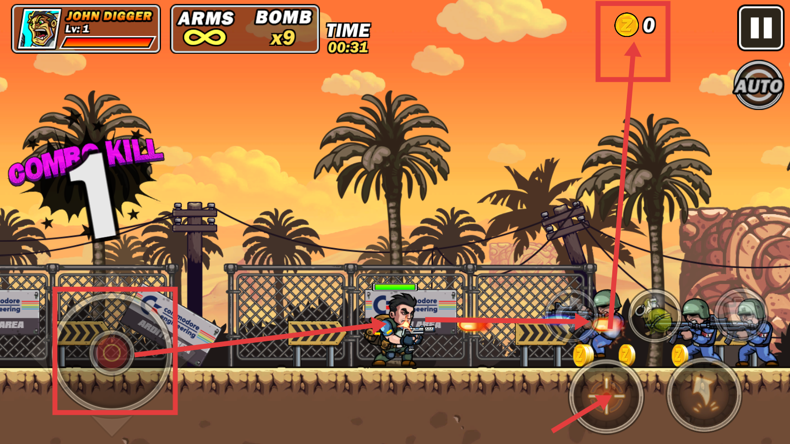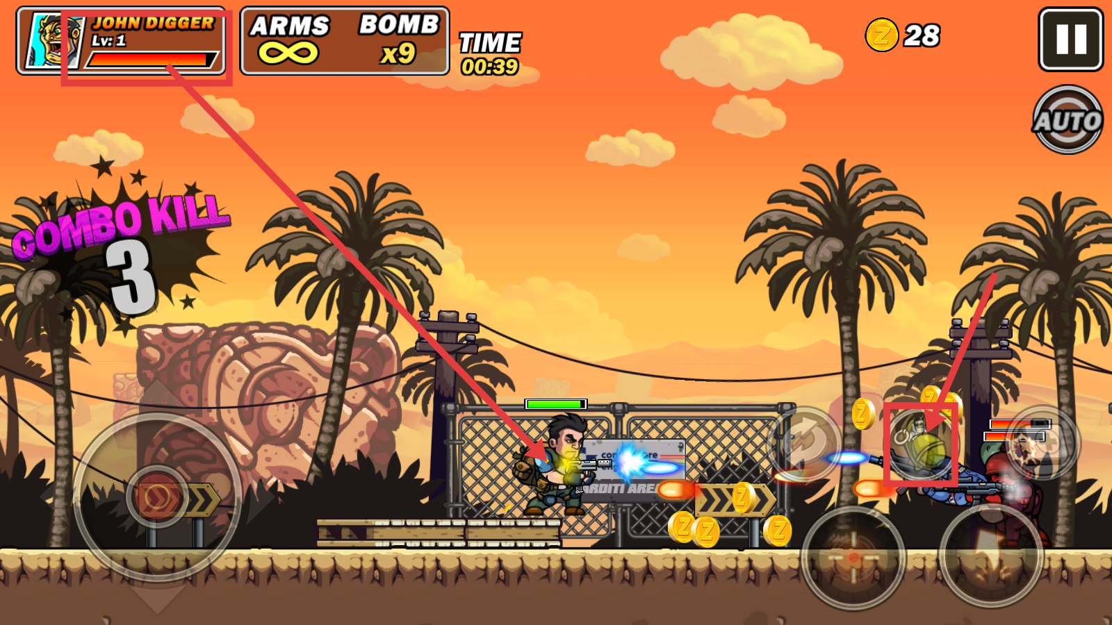 3、操控角色【JOHN-DIGGER】,战斗中合理使用道具,触发【COMBO-KILL】,提升战斗效率与金币获取量。