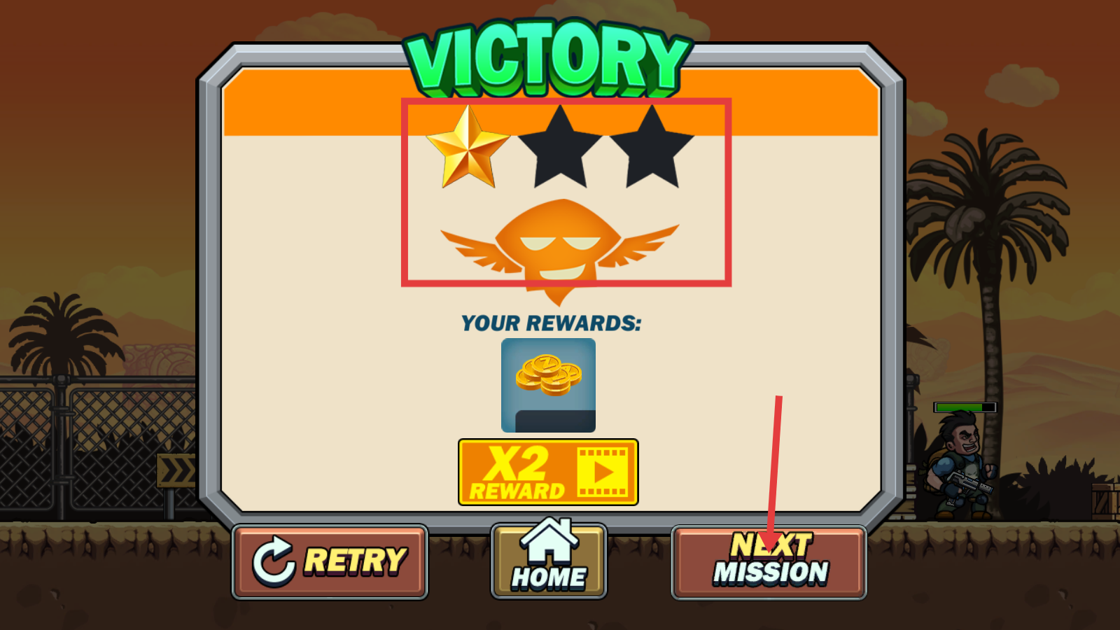 4、通关后查看星级评价,点击【NEXT-MISSION】进入下一关,持续挑战积累奖励,提升角色等级和战力。