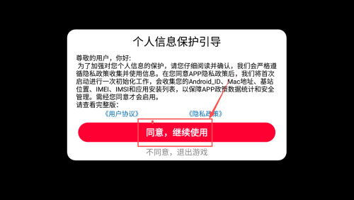 1、如何同意隐私政策:在游戏启动时,阅读个人信息保护引导,点击“同意,继续使用”以接受隐私政策。