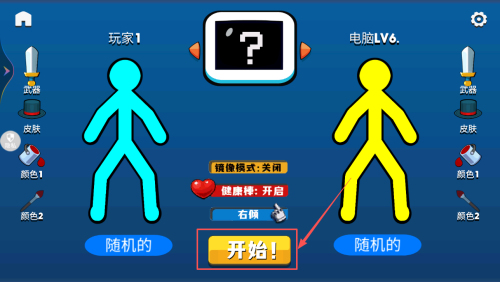 3、如何设置游戏选项:在角色选择界面,设置你的武器、皮肤和颜色,点击“开始!”按钮进入战斗。