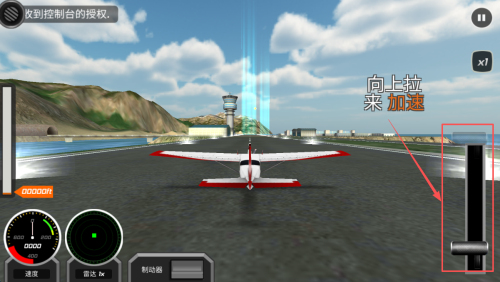 2、如何加速起飞:在跑道上,向上拉动控制杆以加速飞机,准备起飞。