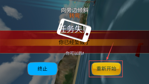 4、如何重新开始:如果任务失败,点击“重新开始”按钮,尝试再次完成飞行任务。