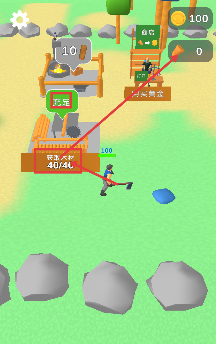 1、关注【获取木材-40/40】进度,木材收集充足是解锁建筑和交易的基础,需及时关注木材数量变化。