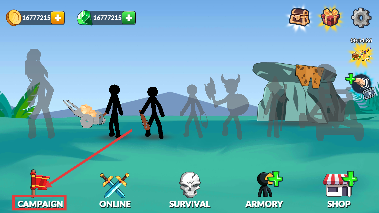1、点击【CAMPAIGN】模式开始游戏,利用金币和绿宝石资源,开启主线剧情探索。