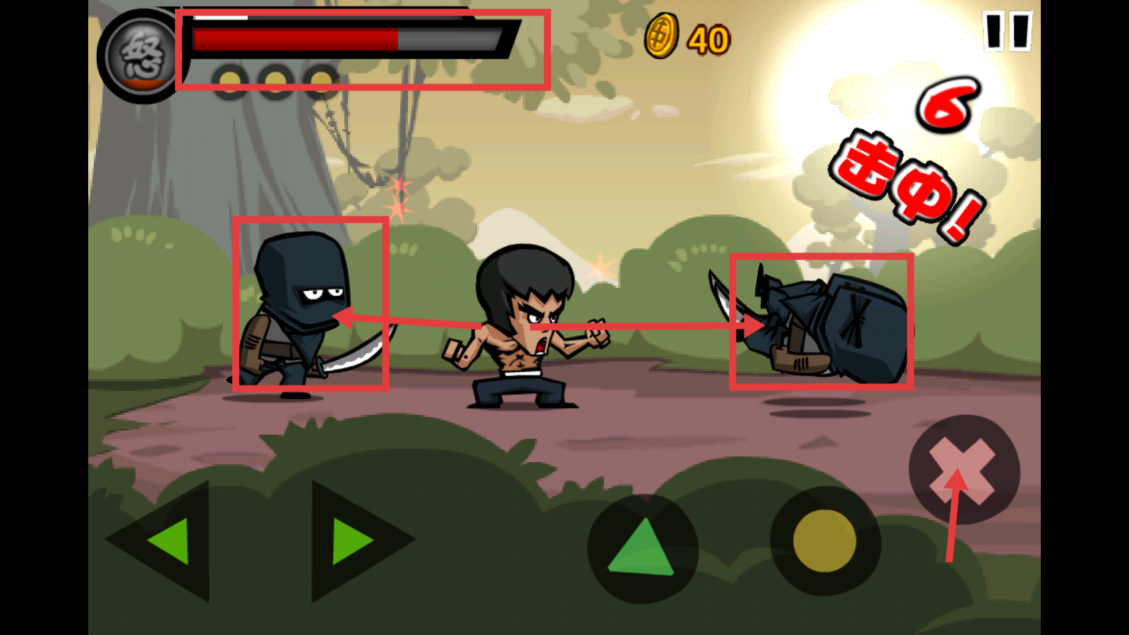 3、战斗中攻击敌人,积累【怒气-值】和【金币-40】,击败敌人提升战斗收益。
