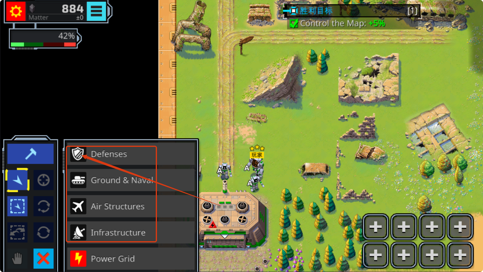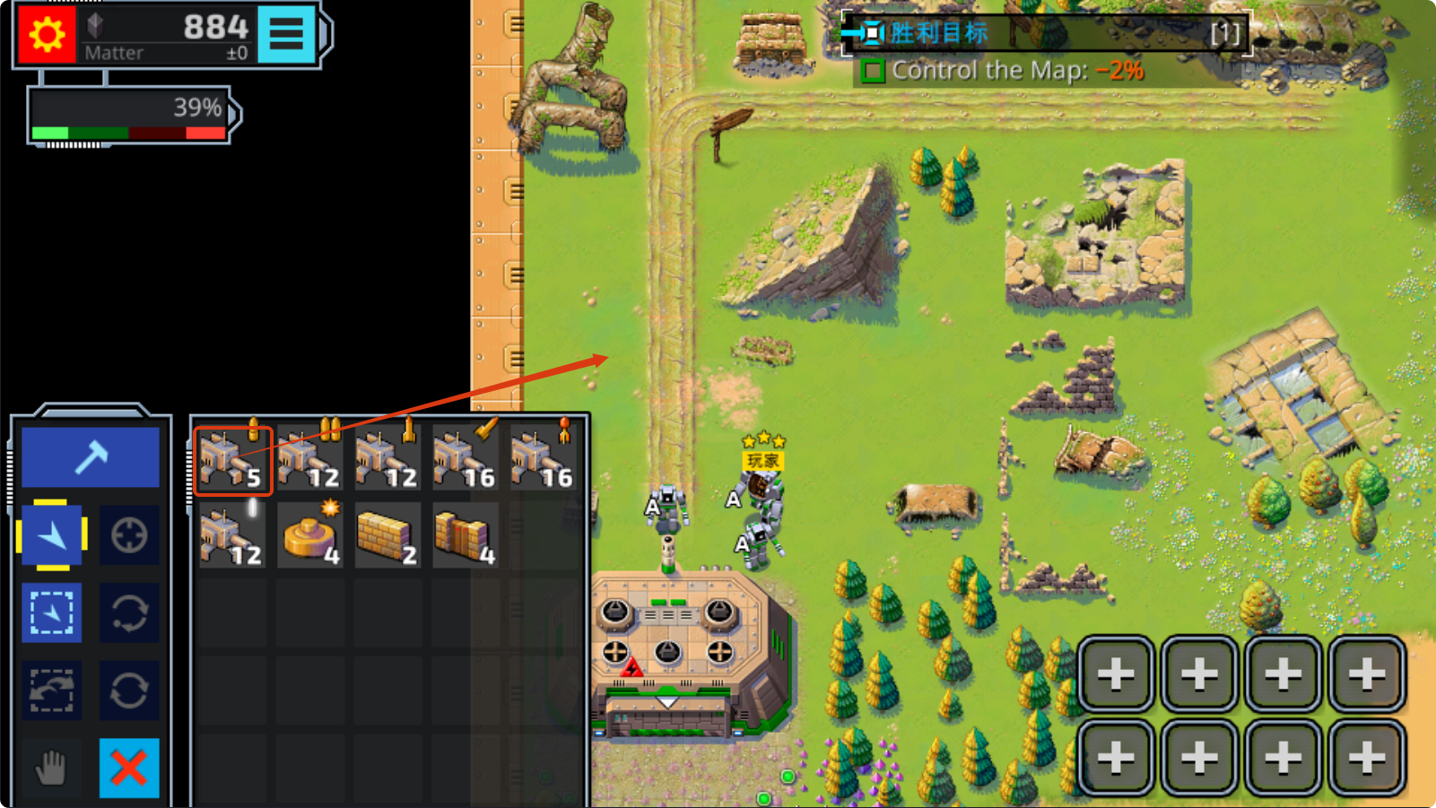 4、选定防御建筑后,在地图合适位置点击,让单位执行建造,逐步扩大防御区域,提升基地安全性。