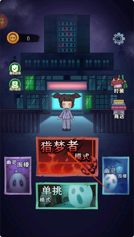 1、进入游戏后,选择【猎梦者模式】开始冒险,熟悉该模式的核心玩法,开启惊悚的塔防之旅。