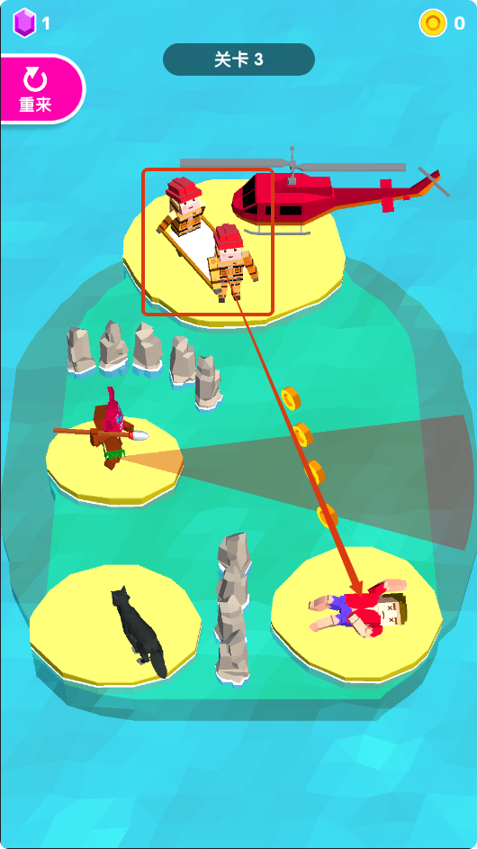1、在关卡3,规划救援路线时,先观察场景中危险区域,确保救援人员能安全抵达目标人物处。