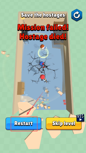 4、最后,若任务失败就点击“Restart”重试,或“Skip level”跳关。