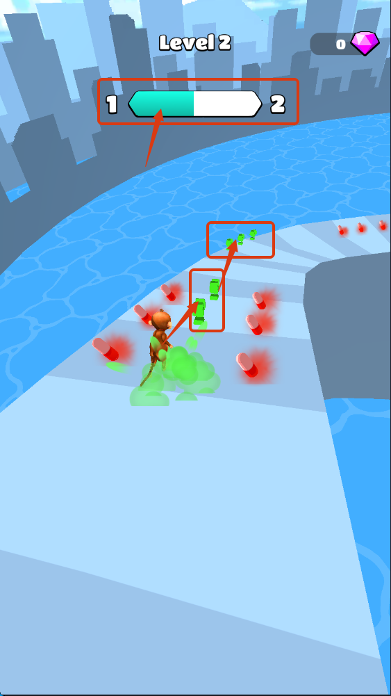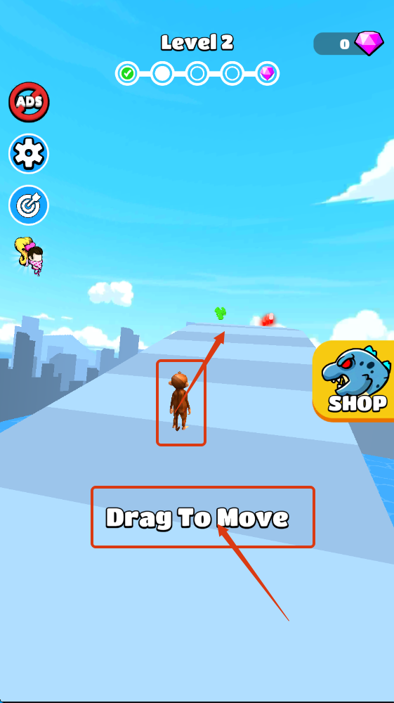 1、在Level-2中,【Drag-To-Move】控制角色移动,收集沿途资源,开启关卡挑战。