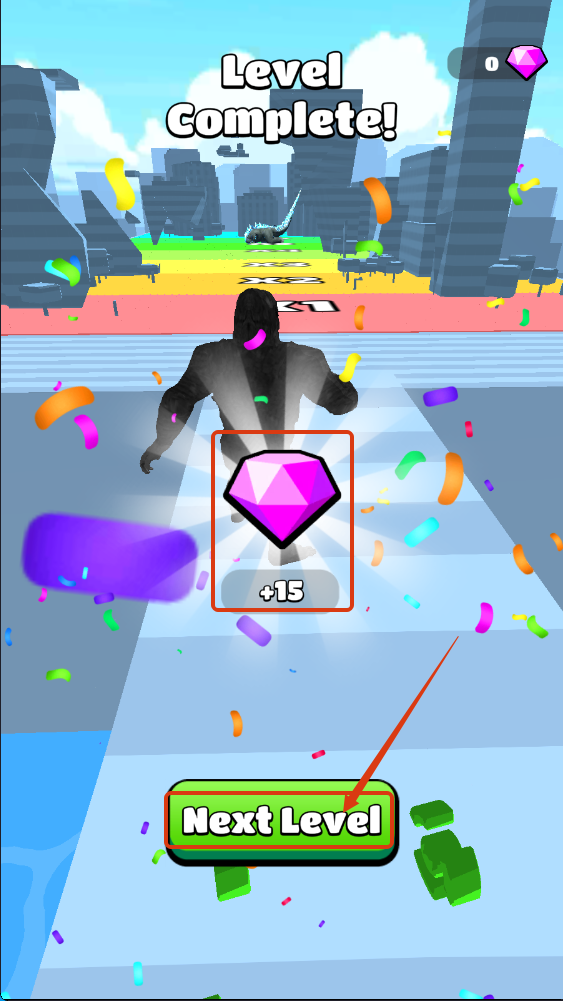 4、关卡完成后,领取【+15-钻石】奖励,点击【Next-Level】进入下一关,继续挑战。