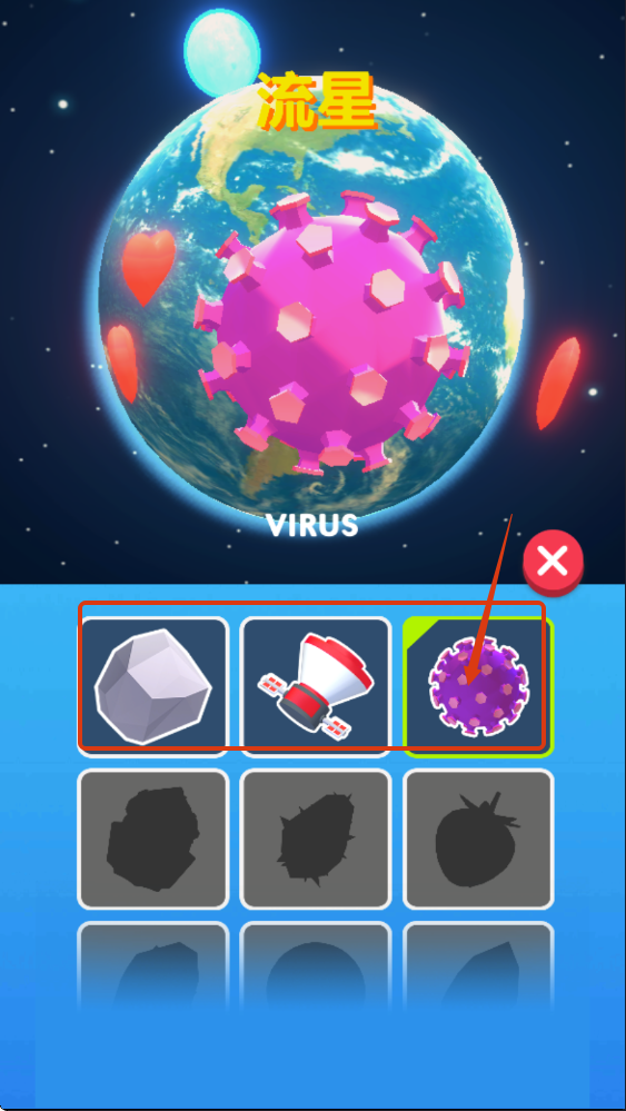 1、在流星选择界面,可选用VIRUS类型流星,同时还有多种未解锁流星类型,后续可逐步解锁以丰富玩法。