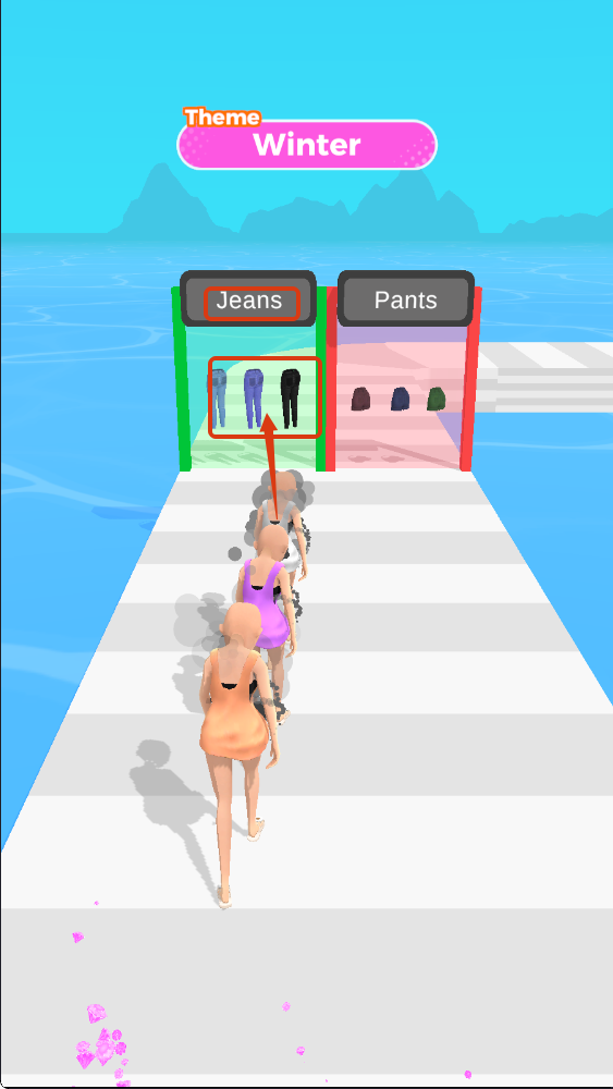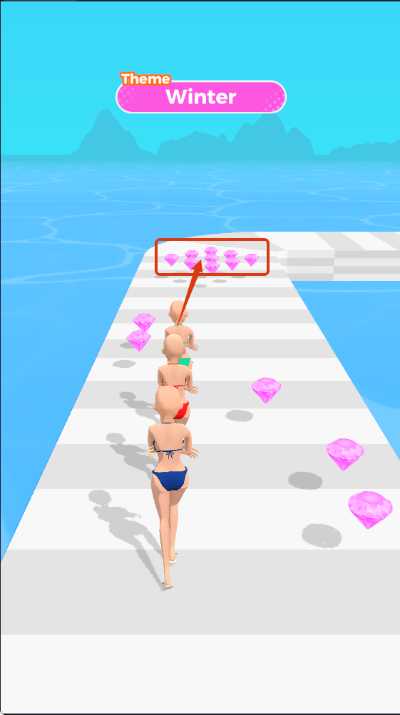 2、在【Theme-Winter】赛道上,收集粉色钻石,积累资源以解锁更多造型元素。