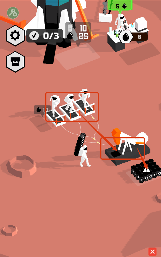 2、安排多角色在资源设施上协作,高效处理资源,同时关注资源库存变化,保障加工流程顺畅。