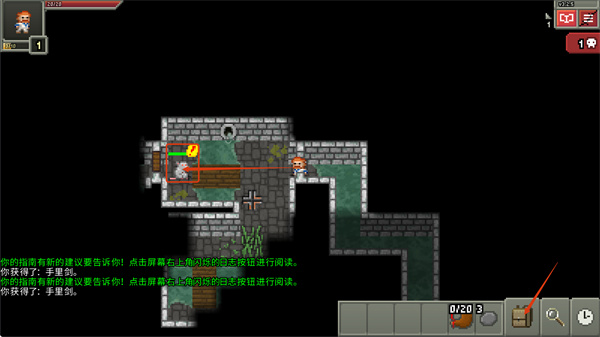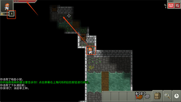 1、击败【啮齿小兽】后获得【水里之种】,留意左上角【等级-1】,按提示点击右上角返回按钮继续冒险。