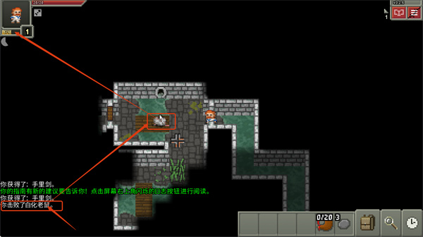 4、击败【白化老鼠】,留意左上角【等级-1】,持续探索场景收集道具,推进冒险进程。