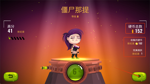 4、结算界面查看【硬币总数-152】等新纪录,点击绿色继续按钮,开启下一轮冒险。