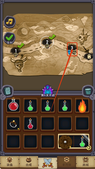 1、选择地图第3关开启战斗,提前查看关卡标识,规划冒险路线,为战斗做好准备。