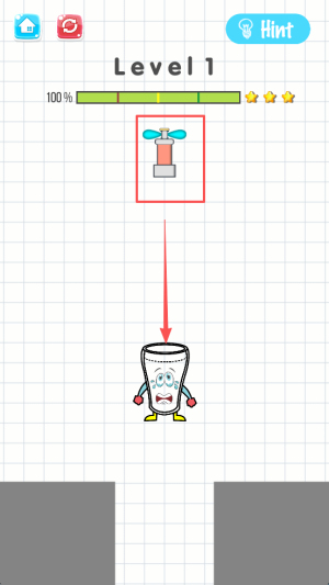 1、开启关卡准备:进入关卡后观察水杯位置与水流起点,明确 “装满水、让水杯微笑” 的目标,熟悉画线操作规则。