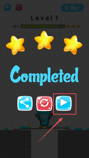 4、最后,完成关卡后点击播放按钮继续进行下一关。