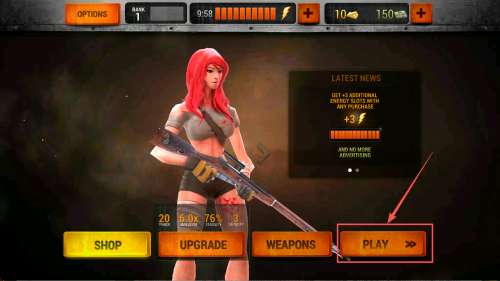1、如何进入主游戏界面:点击“PLAY”按钮,进入游戏主界面,准备开始游戏。