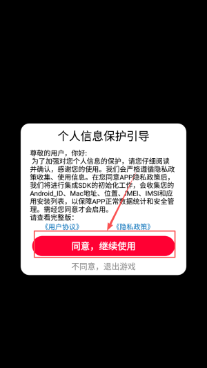 1、如何同意隐私政策:在游戏启动界面,阅读隐私政策后,点击“同意,继续使用”按钮以接受政策并继续。
