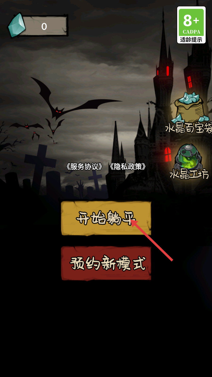 1、进入游戏界面后,点击【开始躺平】按钮,正式开启游戏冒险。