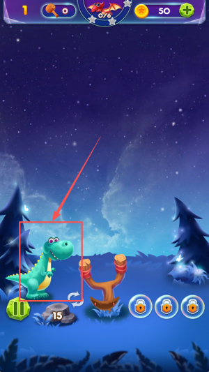 2、接着,拖动屏幕上的泡泡龙调整射击角度。