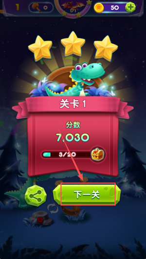 4、最后,完成关卡后点击“下一关”按钮继续游戏。