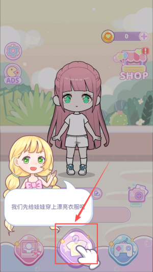 2、接着,通过点击屏幕上的图标为娃娃选择服装和配饰。