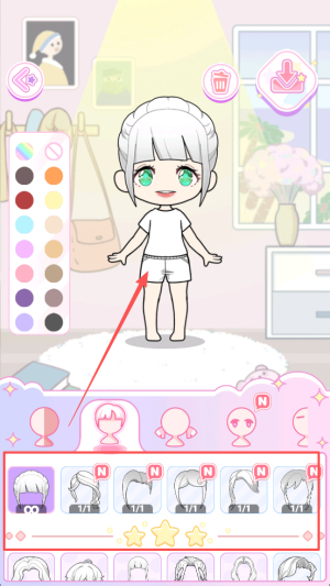 3、然后,使用下方菜单中不同的装扮选项来定制娃娃的外观。