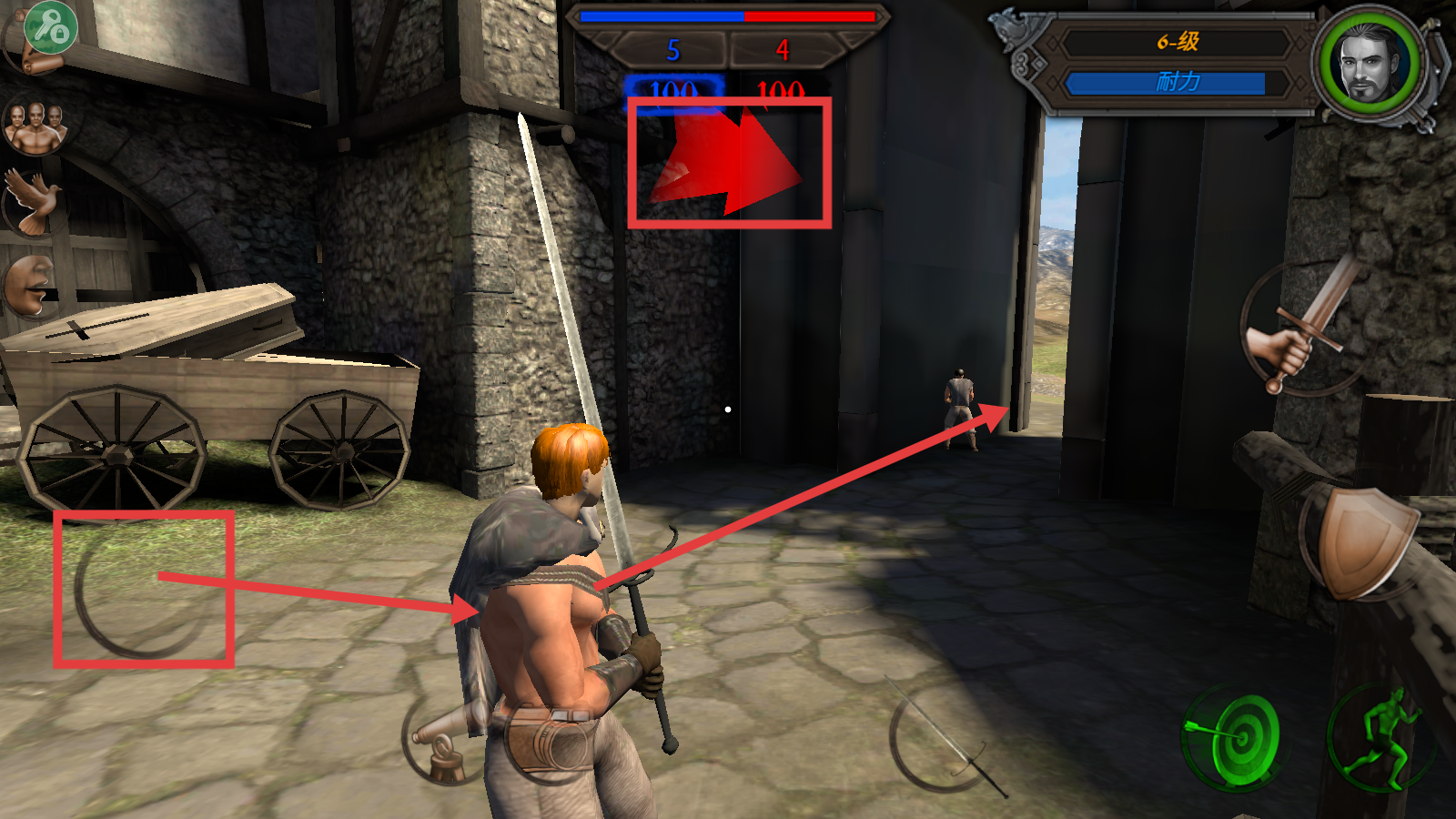 4、战斗时利用左侧控制按钮移动角色,追击敌人,展开战斗对决。