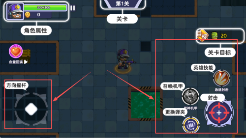 4、如何操作角色:在游戏进行中,使用左侧的方向摇杆控制移动,右侧按钮进行射击和使用技能。
