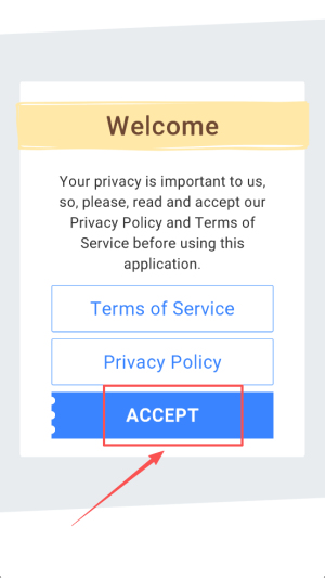 1、首先,阅读并同意隐私政策和使用条款,点击“ACCEPT”按钮进入游戏。