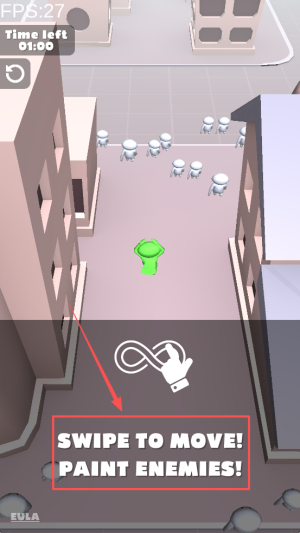 1、首先,根据屏幕提示,滑动手指来移动角色并用油漆涂敌人。