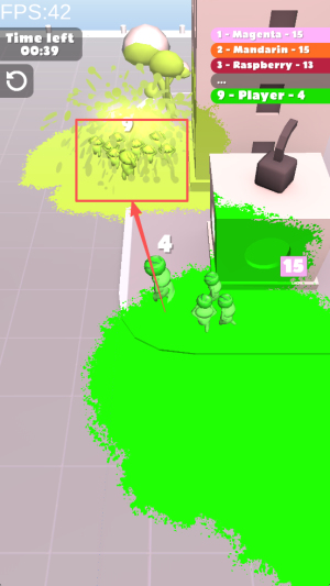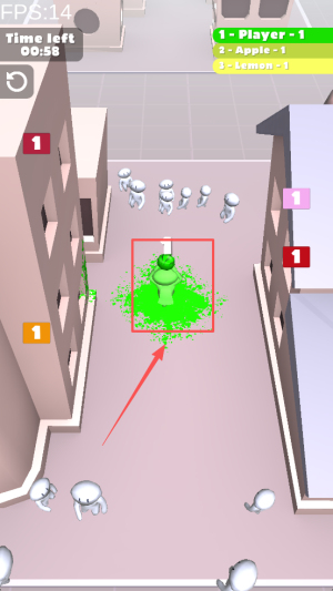 2、召集同色伙伴:控制持相同颜色水果的小人四处走动,吸引散落在场地的同色伙伴,壮大自身队伍规模,增强占领能力。